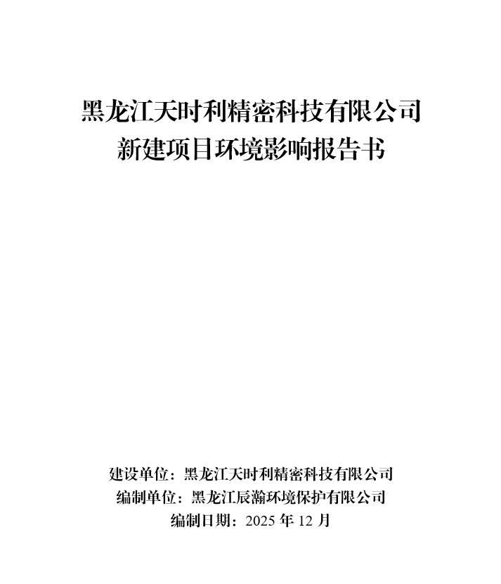 黑龍江天時(shí)利精密科技有限公司新建項(xiàng)目環(huán)境影響報(bào)告書及公眾參與說明